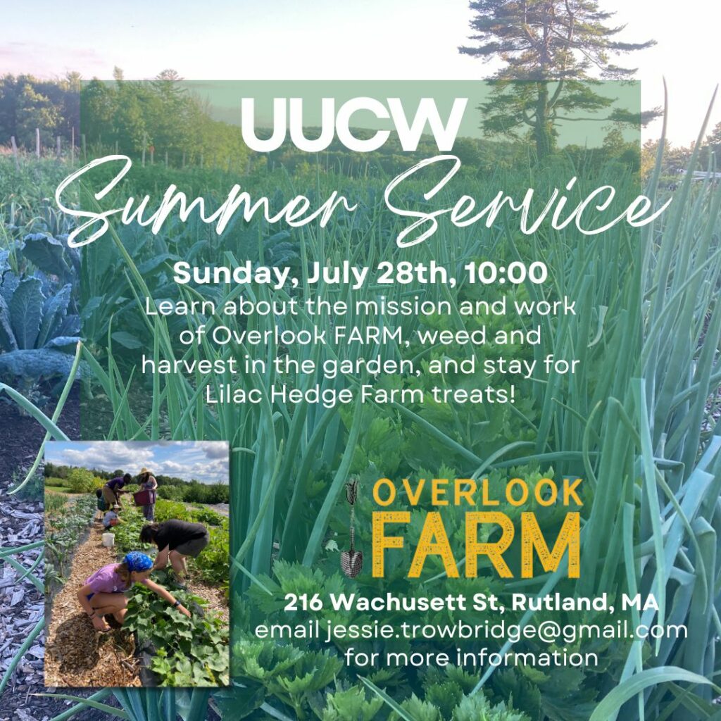 Overlook FARM shares a driveway with Lilac Hedge Farm at 216 Wachusett St, Rutland. We will meet in the parking lot at the top of the hill at 10:00 and then head to the Overlook FARM gardens from there. It is a short walk on dirt/mulch paths, but anyone can drive down to the garden space. We will be weeding and harvesting for the weekly food distribution to local food pantries, as well as learning about the mission of Overlook FARM. There will also be some less physically demanding activities for those who would like that option, and anyone is welcome to enjoy the beautiful space. The Lilac Hedge Farm shop and ice cream window open at 11:00, for those who would like to stay to eat and hang out at the farm afterward. Don’t forget drinking water and sun protection! Please email with any questions, or call or text Jessie on Sunday morning at 978-868-4504.