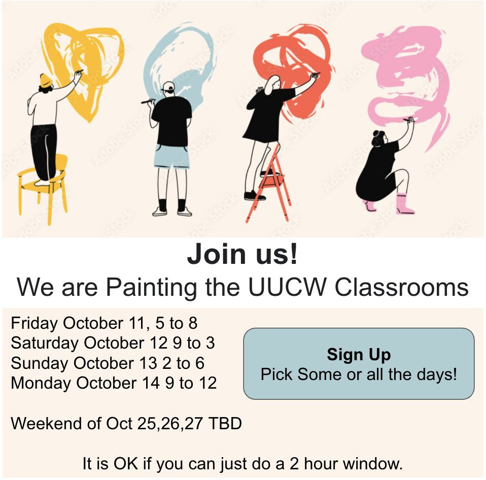 Join Us! We are Painting the UUCW Classrooms! October 8, 2024 • Jennifer Landry Click the form above, or HERE, to sign up!