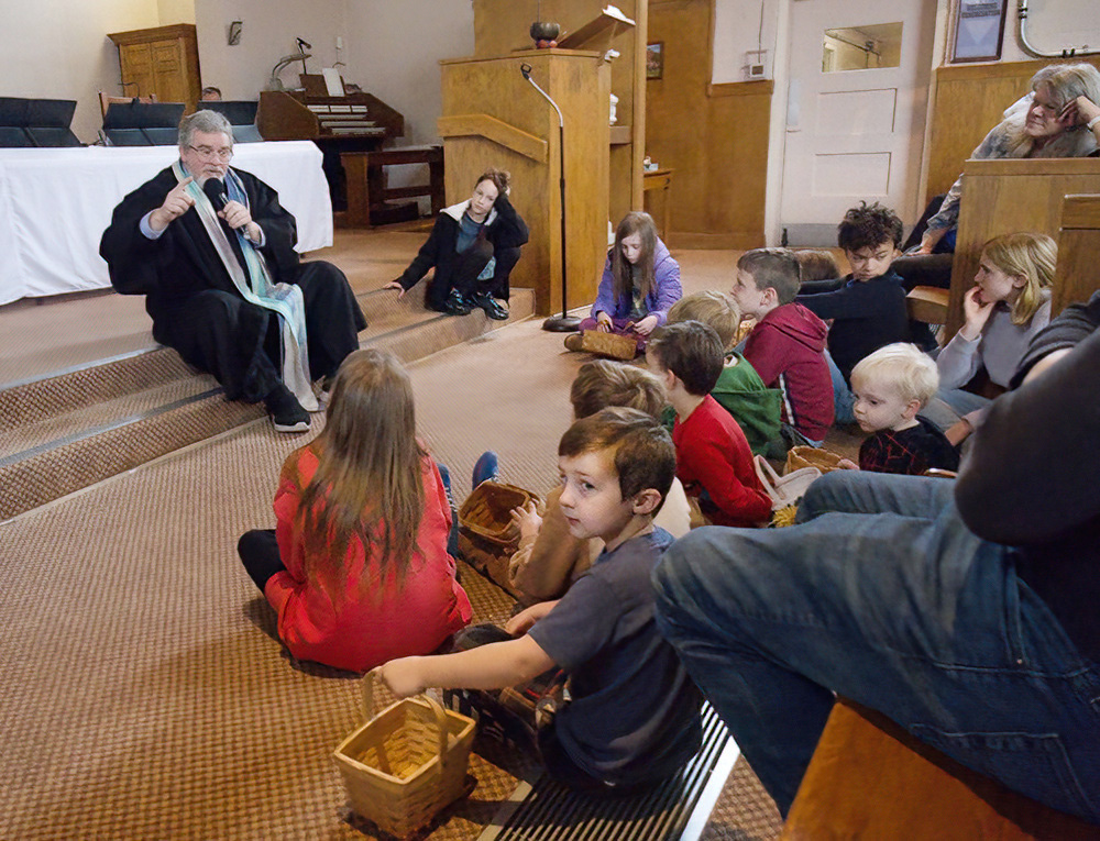 Our Guest Minister on November 9, 2025 was the Rev. Michael F. Hall. He is shown here telling the story of Daedalus & Icarus, during the “Time for All Ages.”