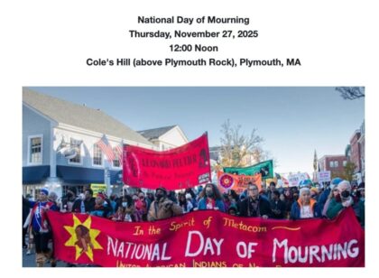 An in person event will take place on Thursday, November 27, 2025 at noon Cole’s Hill (above Plymouth Rock), Plymouth, MA. You can also watch the livestream on Youtube.