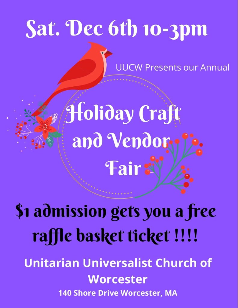The busy elves have been making the crafts, assembling the basket raffles, cleaning the tables, and making the floor plan for our over 30 crafters. We are thrilled to hold our annual Holiday Craft Fair on Saturday, December 6th from 10am – 3pm at UU Church of Worcester. Please let a friend or family member know about this special fair! See you there!!