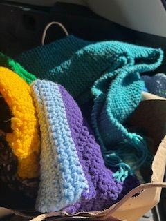 And the fondest example I’ve seen of crafting hope is happening nearby with Martha Krenshaw and the knitters and crocheters at The Willows Retirement Community. All year the participants knit scarves and hats with the cherished desire to give warmth to those in need. I’ve enjoyed collaborating with Martha, picking up the knitted items and arranging events for our Youth Group and Coming of Age teens to distribute them.