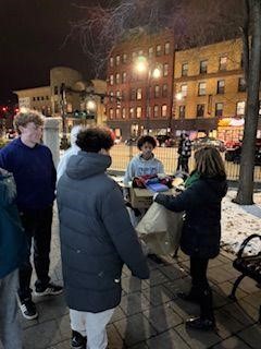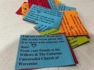 Check out our first 2025 Park Drop Photos: Thank you to Cori Henry, Kris Billiar, and Andrew Wilkins and the high school Youth Group for spreading hope in City Hall Plaza. And again, thanks to Martha Krenshaw and the knitters at The Willows for their flying knitting needles and crochet hooks and yarn to blanket the city of Worcester in warmth. We’ll be heading out for round two park drop in Elm park in January with the Coming of Age class and their mentors.