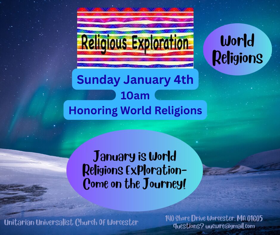 Happy New Year to All of our Religious Exploration Friends! January 4th start the month of Exploring world religions. We hope you can join us on the journey. See you at 10am on Sunday January 4th!