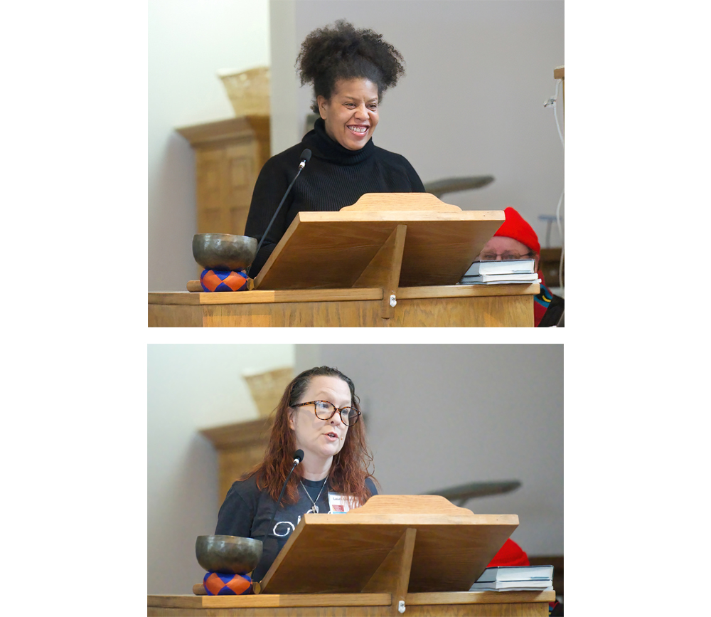 Karen Stephenson (top) and Laura Lenahan gave personal Testimonials about why they pledge during the Stewardship Sunday service on March 1, 2026.