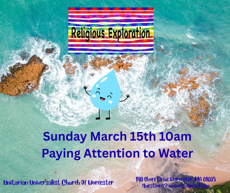 Please join us for Religious Exploration Classes on Sunday March 15th at 10am. We will be paying attention to our resources like water and plantlife. Our UU 7th principle states that we respect the interdependence of all existence of which we are a part. Our younger classes will be looking at water and our older class will be doing some indoor planting.