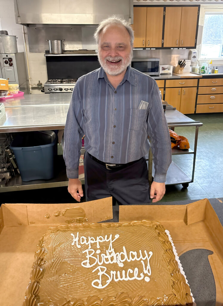 The Fiber Arts Group, which is very fond of Bruce Leshay, brought a birthday cake for him, which they shared at Fellowship Hour.