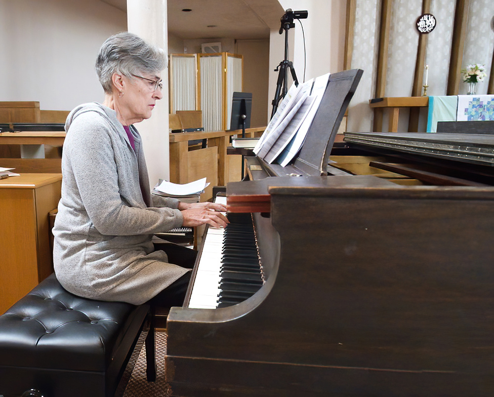 Guest musician Kathy Nagy plays “Woyaya,” the Opening Hymn on March 15, 2026.