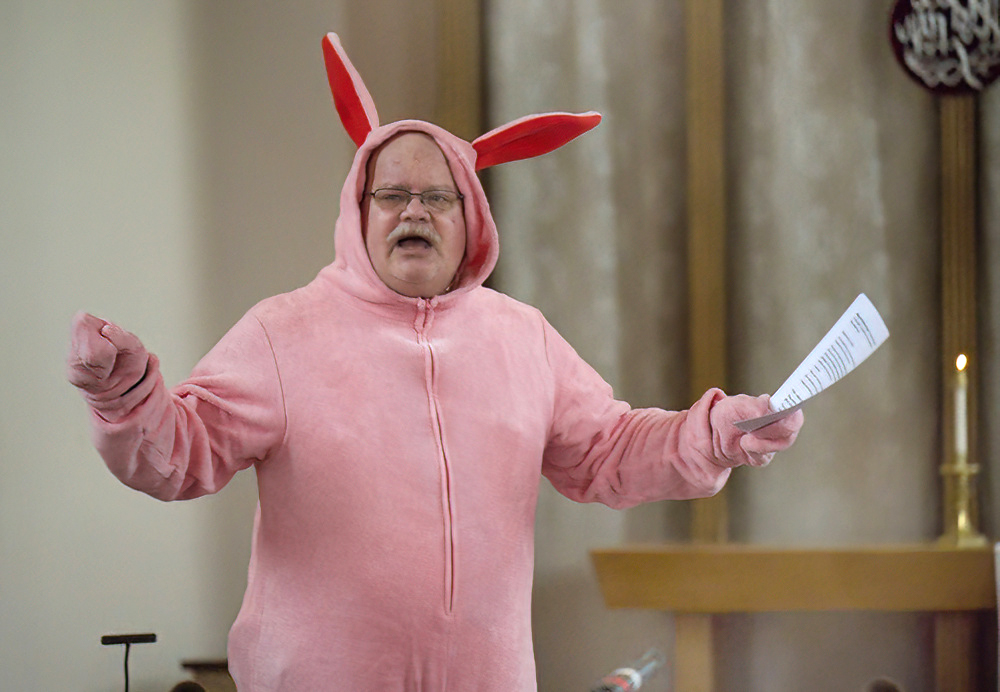 Easter Bunny #2 – the Rev. Aaron Payson donned his suit for the Story for Children of All Ages.
