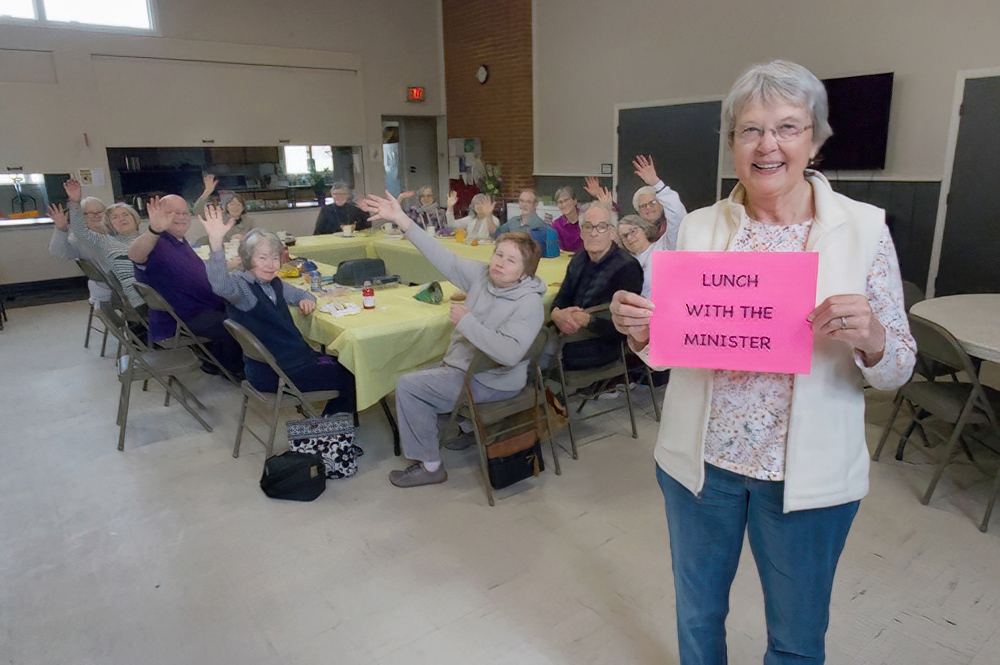 We have Nancy Hancock to thank for leading the popular program “Lunch with the Minister” for the past decade. Thanks for making it happen, Nancy! She’s shown here with the gang on April 1, 2026.