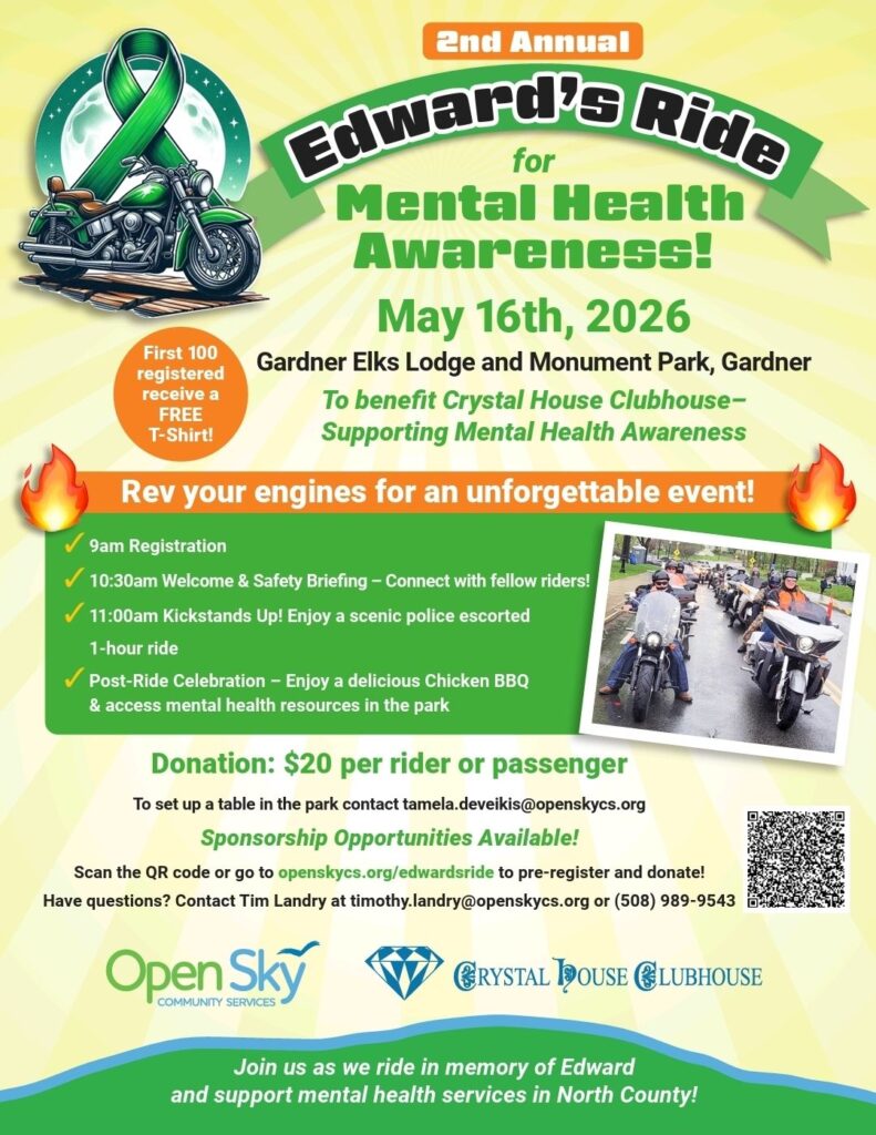 Edward’s Ride for Mental Health Awareness – May 16, Gardner Elks Lodge, Gardner MA April 14, 2026 • Jennifer Landry Motorcycle Ride and Celebration in memory of the life of Office Admin Jen Landry’s nephew Edward. Please join us!