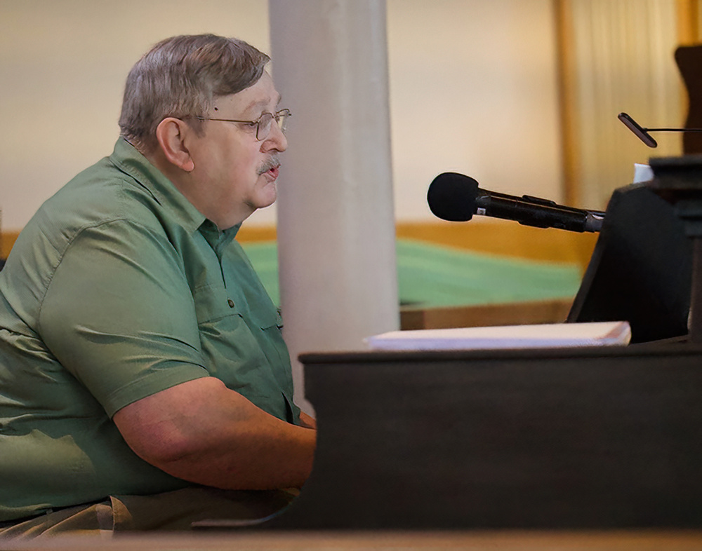 Top photo: Dr. Stephen F. Ledoux, Ph.D., delivered the Reflection “Can a Science Flood Story Inspire Us as Much as the One by Noah? OR How Long Can You Tread Water?” on December 28, 2025. Bottom photo: Dr. Ledoux’s wife, Dr. Nelly Case, Ph.D., was the pianist for the service. Photo of the Week #4