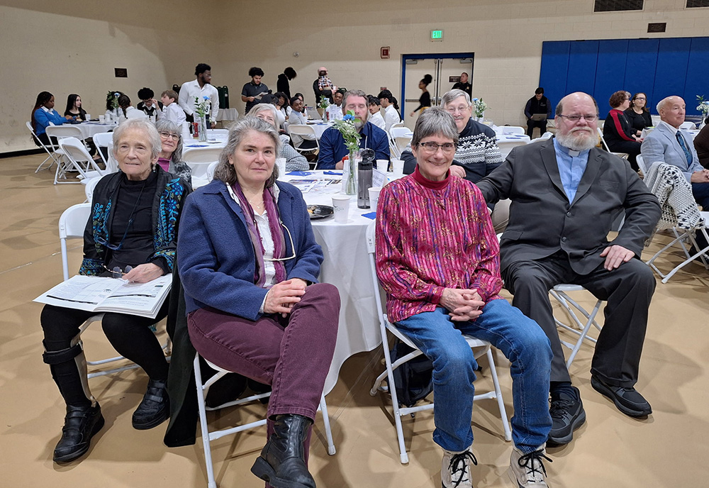 On Monday, January 19, 2026 UUCW had a table at the 41st Annual Community Breakfast Honoring The Reverend Dr. Martin Luther King, Jr. Attendees were, front row from left, Susan Crossley, Claire Breyton, Mara Pentlarge, the Rev. Aaron Payson. Back row, from left, Beth Posner-Waldron, Vivian Borek, Erik Johnsen, Matt Johnsen. Photo of the Week #2