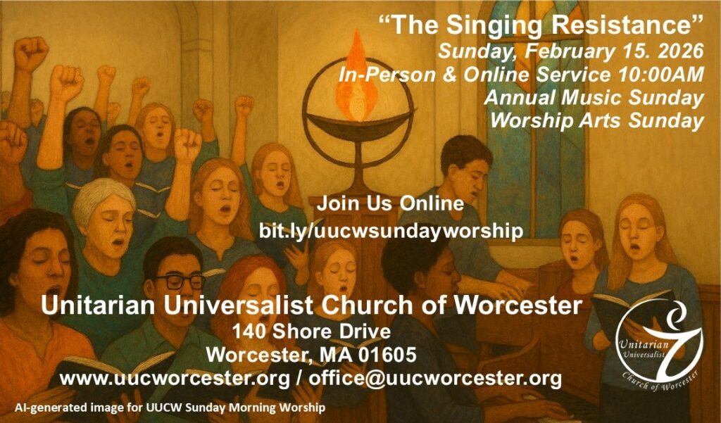 We live in a turbulent moment, when the path we should follow is not always clear. Fear and anger are part of our daily lives. How do we find clarity, solidarity and purpose in this troubled time? This service will provide musical resources from today and yesterday that we can use together to provide a singing resistance. Please come prepared to raise your voice in song and solidarity.